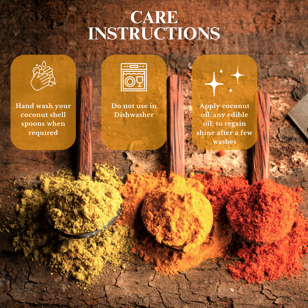 Coconut Shell Masala Spoons for Spices, Tea, Coffee, Desserts - (Set of 6)